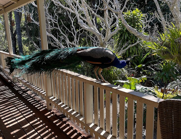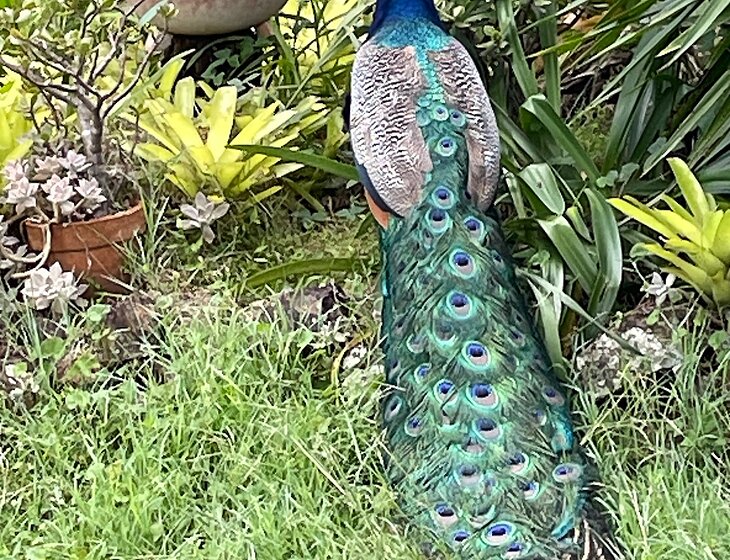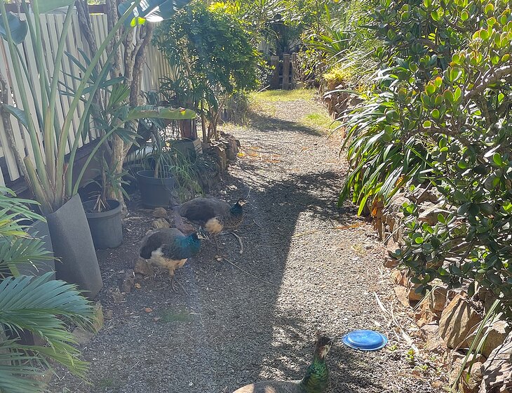 There’s a peacock family with a male, 2 peahens and at the moment 5 chicks. I’m surrounded by farms with my own pocket of bush which surrounds the house yard so lots of wildlife come and go. It’s very secure property with 2 locked gates.