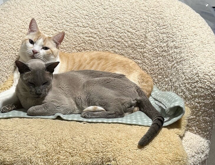 Our fur babies are.... Leon the relaxed senior Tonkinese who prefers several small meals a day, has morning medication of which he takes without drama and spends most of his time sleeping. Once he feels comfortable, he becomes very fond of a warm lap and pats.