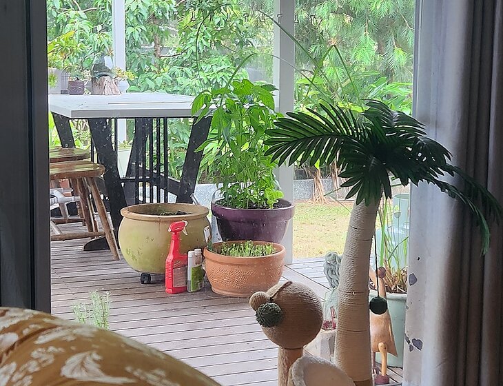 Gardening requirements are fairly low, my pot plants need watering once per week, as does my vegetable garden.