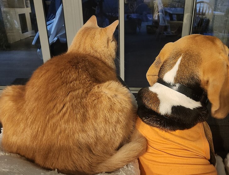 We have 2 sweet beagles, and two darling and strictly indoor cats. We are looking for someone who understands loving dogs and indoor cats.
