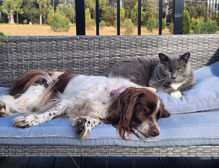 We ahave a 15 year old cat and a 6 year old Springer Spaniel.