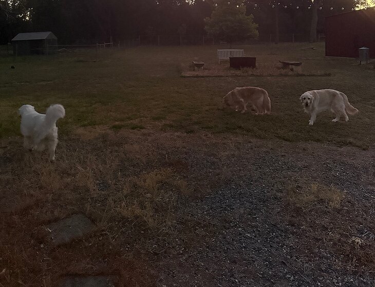 Luckily they have 1 and 1/4 acres at home and the joy of new people to play with, will be enough to make them want to snooze more than usual!