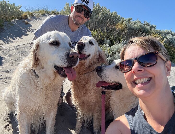 Our 3 beautiful golden retrievers are an important part of our lives - gentle, affectionate, and happiest when they have someone kind and attentive around them to give them cuddles and play tuggy and do zoomies with on the land as well as long snoozes indoors.