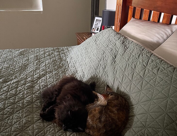 “Thank you Tatum & Matt for choosing us to look after your big beautiful home. Blue was a perfectly polite and well mannered boy to look after, and Luna and Poppy are the sweetest kitties that mostly kept to themselves. Your property is stunning and perfectly peaceful. Wild ducks in the big pond is a bonus.”