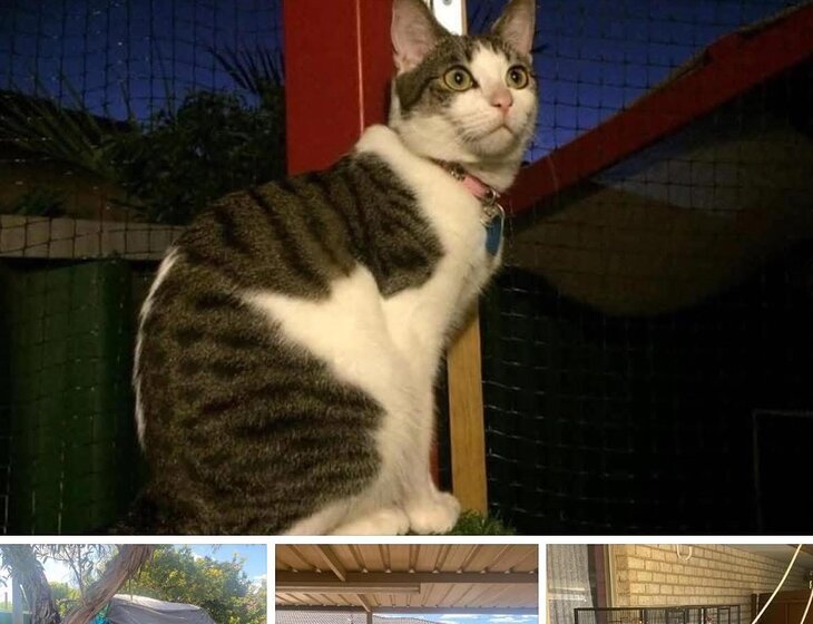 Looking after our cat Meg, 2 outdoor rabbits in an easy care enclosure & 5 aviaries (3 small, 2 large)