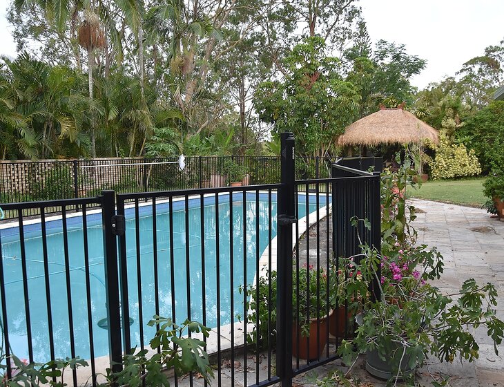 large home (5 bedrooms) with granny flat on 2.5 acres of gardens with large pool covered areas and garage and car port. Very quiet location, semi rural, though 5 min walk to bus stop and 10 min walk to tavern, gym and shops