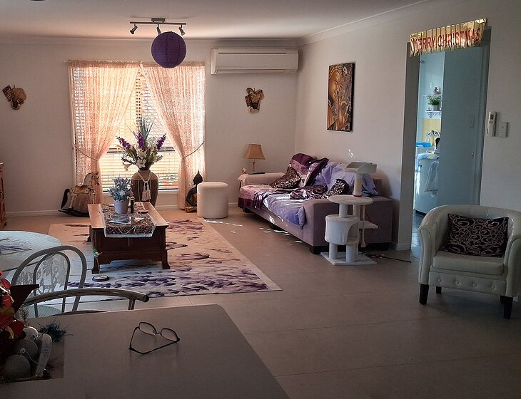 Seeking mature couple to care for my 8 mth old ragdoll x plus maintain my pool n garden's The home is 2 storey brick home with 4 bedrooms upstairs n 2 bathrooms n 1 living area 2 toilets.Downstairs open plan kitchen formal dining room 1 formal lounge n another lounge area plus toilet.Large undercover entertainment area plus large saltwater concrete pool which will need maintaining my block backs into a parkland so nice n private.2 Car garage but my car would be stowed there while I'm away but room for 1 vehicle plus on driveway have one 8 mths old ragdoll cross kitten which needs caring for I need someone with pool care knowledge also.I'm 25 minutes to Bribie Island n walk to shops or 5 min drive to major shopping centres.I perfer the carers to stay in one of the guest rooms