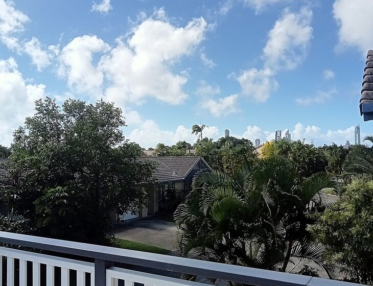 * 2 balconies off the 2 large bedrooms upstairs facing into the complex with a view to Surfers Paradise