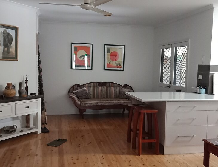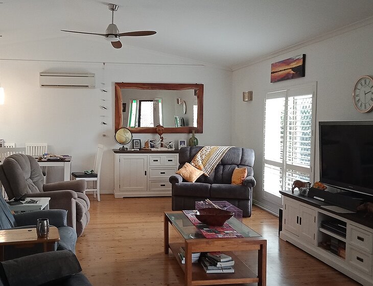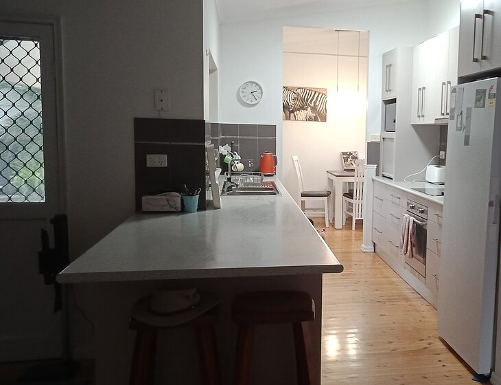 We have a 4 bedroom, airconditioned house with a large timber deck at the rear. Our house backs onto a creek and walking tracks. The garden is low maintenance and we are close to public transport and a shopping centre. We have Rusty, a 13yo maltese poodle, Holly, a Hahns Macaw (mini Macaw) and 3 medium size fish tanks. It is preferable to have someone who can spend time at home with Rusty. He has no health issues, just likes company and a short walk every other day. Holly will remain in her cage so daily feeding and bottom paper change is all that is needed. And a wee chat!! The fish will need daily feeding and tanks a little maintenance if needed.