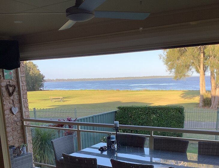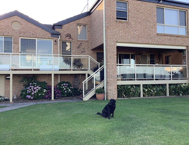 Lake front property central coast NSW .Split level 4 bedrooms ,we have an 8 year old black Labrador who loves human company .Plenty of space to park a caravan if required. Beautiful water views across to The Entrance.