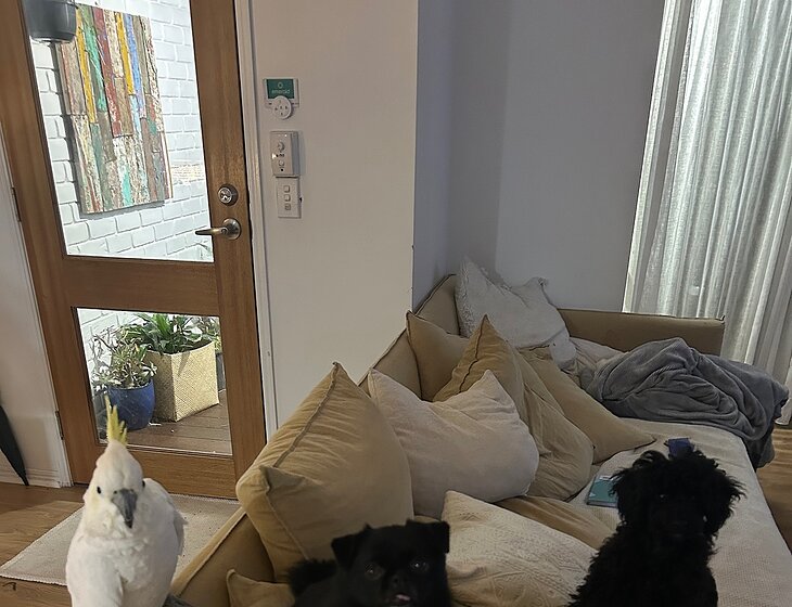 The two dogs are incredibly loved and spoilt - they sleep on the bed - sorry! 😌 I work long hours so they sleep a lot during the day - I prefer the sitter not to take them for walks - Chubby although only 4 kilos - identifies as a Rottweiler so will attack anything bigger than him- and Lucille is still learning to walk properly on a leash. Charlie lives on the back enclosed veranda - she is very old so just sits on top of her cage - she sleeps most of the day - she will just need to be covered at night and uncovered in the morning- fresh seed and water daily.