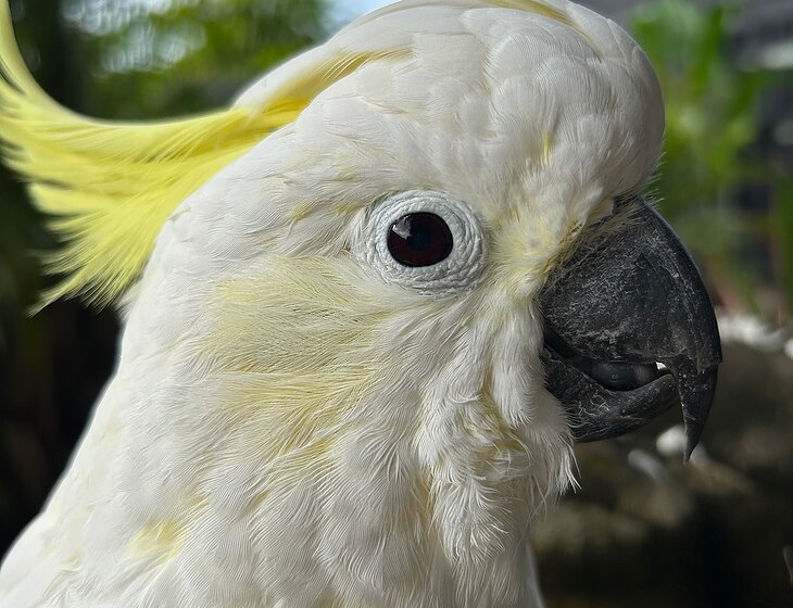 Charlie is a 50something yr old Lesser Sulphur Crested Cockatoo