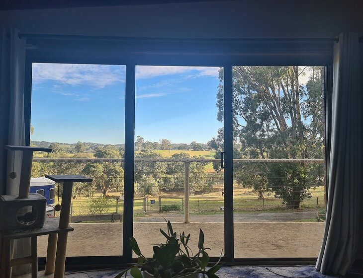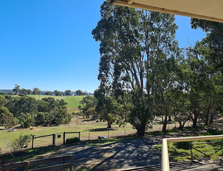 “Wow, what a great location and a mix of animals. Dogs kept me entertained with their antics, especially swimming in the dam. Scottie the horse welcomed a gentle neck rub and hand feeding. Amy left great instructions and the house has a fabulous outlook over the valley. Great time was had. Mark”
