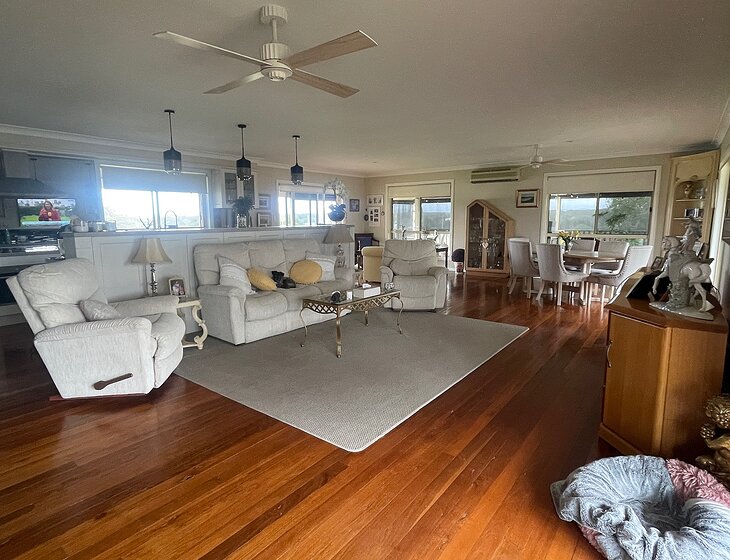 We are on 6 acres with beautiful views. One 4 bed, 2 bathroom home with modern kitchen and a 1 bed 1 bathroom modern flat. Internet, Foxtel available. Combustion fire place to keep you warm. Veranda around the whole house with large entertaining area. We have two chilled horses, one chilled terrier, 5 chooks and a canary. Place to park up RV. Electric gate. 7 minutes to town. 10 minutes to Hunter Valley Wineries. Would prefer a retired couple who are comfortable around horses as they will need feeding once a day and rugs put on and removed.