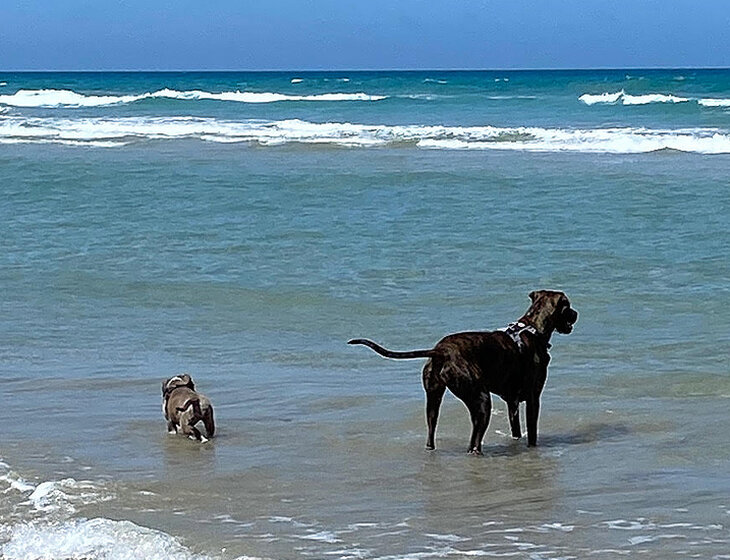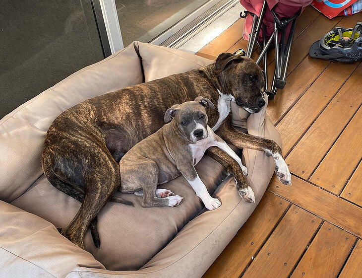 We have two dogs; Griffin, a 4-year old Bull Arab who just loves a scratch and a cuddle, and Sadie, a 5-month old Staffie puppy, who is just the cutest.