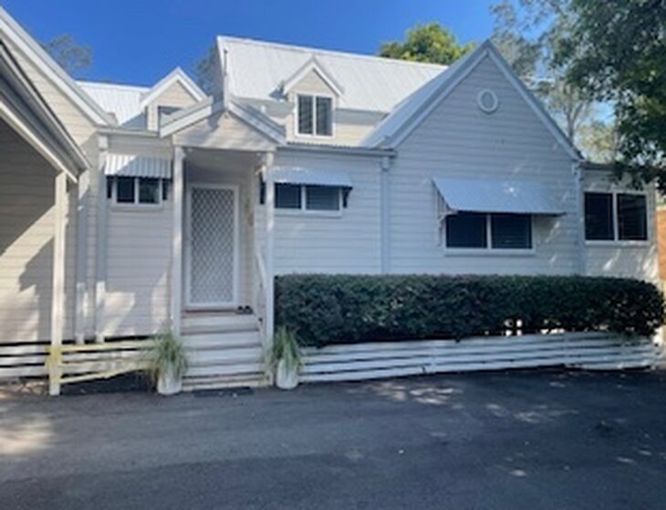 2 storey, Storey book cottage on battle axe block (off street). Large open plan living, kitchen and dining, with laundry, 2 bedrooms, bathroom & toilet downstairs. upstairs is main bedroom ensuite area which will be locked off. Large well maintained garden yard with creek frontage at back of house.