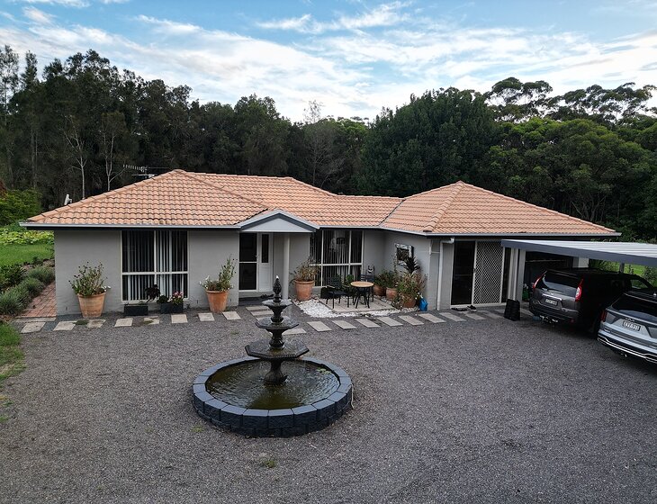 We have a small hobby farm on 3 acres, very confortable and private home with swimming pool and only minutes drive to the beautiful beaches of Port Stephens.