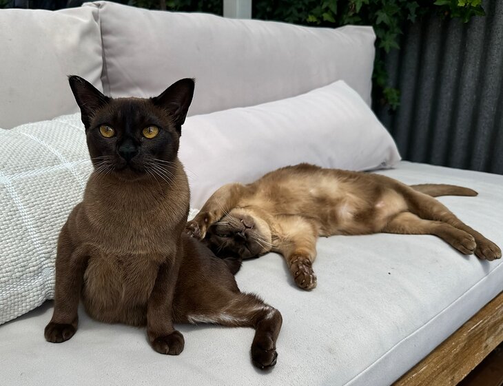 We have two cuddly Burmese cats that need caring for in Botany for 6 nights just after Easter. Theodore & Clyde are indoor cats that are allowed outside in our small backyard during the day. They are pretty low maintenance, & would be happy with someone working from home, or they can be left alone for the day if necessary.