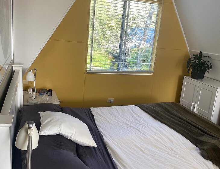 1 bedroom upstairs with walk-in in wardrobe snd study. Downstairs: bathroom , 2 sitting rooms , kitchen . Large garden. Private . We have one lovely affectionate Burmese cat , Lily , who likes company .,