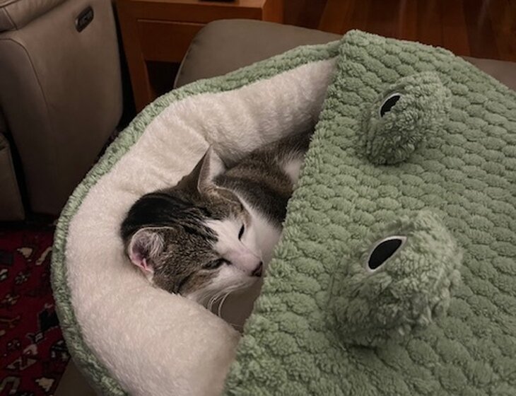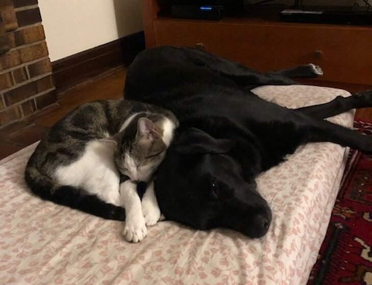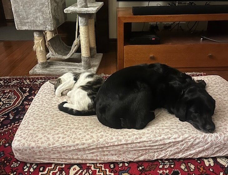 We have a 3 bedroom house that we share with Winter, our female black lab X and Merlin, our sweet male tabby/tonk cat.