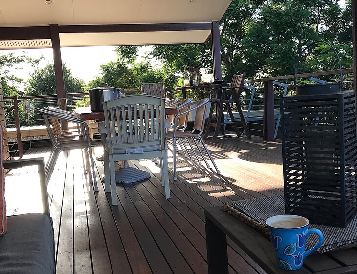Our airy light filled treehouse and garden on top of the ridge north Brisbane. Close to all Brisbane has to offer and a short drive to Sandgate waterfront.
