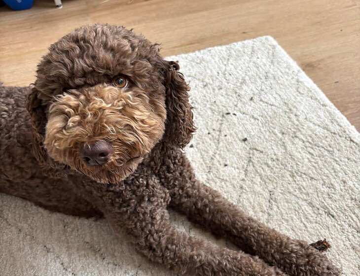 At home we have a relatively low maintenance seven year old labradoodle who loves to have company and any snacks you may offer her.