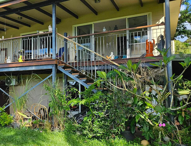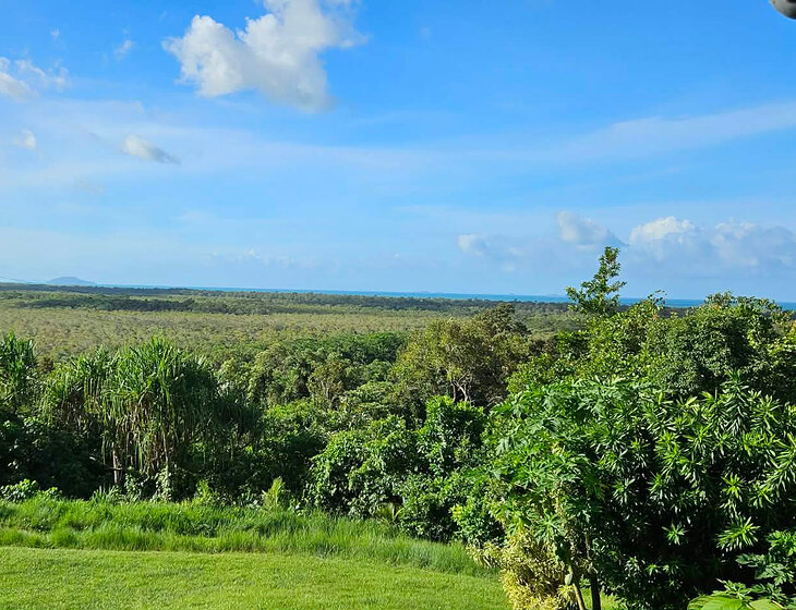 We have a catahoula leopard dog/staffy, we call her a staffahoula (24kg) who is the most adorable and fun loving spoiled dog. She can be a lounge lizard or an explorer and definitely a ballaholic! She is very good at entertaining herself but loves human company more than anything. We also have 2 domestic cats who also love company but usually hang out doing their own thing most of the time. All our furry family are house animals and love attention. The dog loves walking on the beach, she's well trained and behaved. Beach is approx 5km in length and is adjacent to national park. Bramston Beach is a wonderful place if you are want to get closer to nature, wildlife and enjoy tranquility. The property is wonderful if you want some time to sit on the deck, relax and enjoy the magnificent views. We are 25 mins from Innisfail and an hour from Cairns.