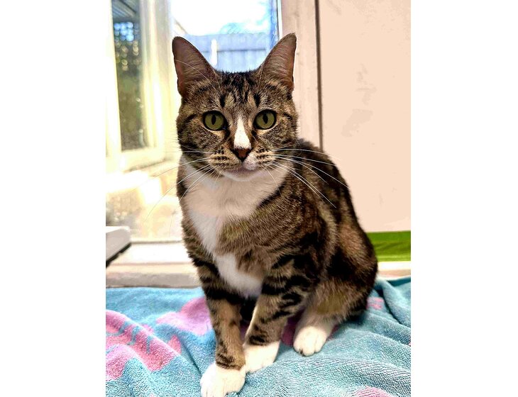 Sunni is a four-year-old tabby. She’s extremely timid, but if you sit quietly and move slowly, she will sit with you for an ear scratch. She's affectionate once she knows you, but is not a lap cat and doesn't like being picked up. She’s a rescue cat/stray, so is very insecure. She is well mannered and gentle, and barely meows/is very quiet. Sunni is strictly indoor only.