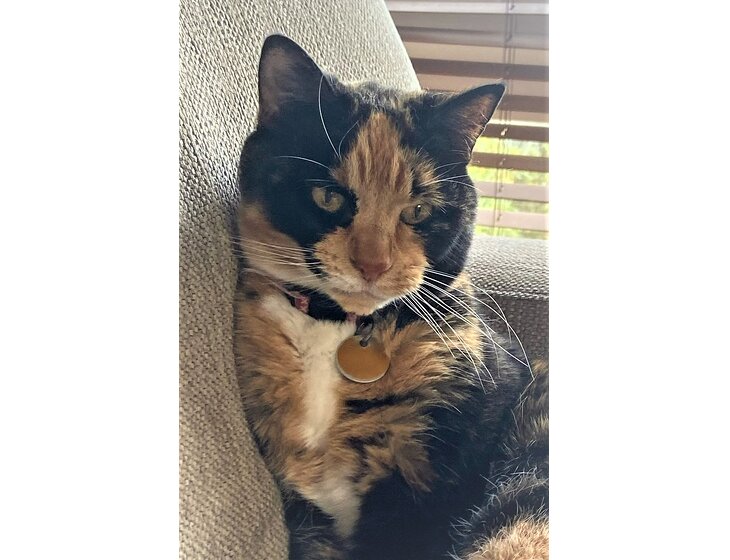 Indi is a 17.5-year-old tortoiseshell. Despite her adventurous youth, she now prefers to spend her time napping in the office or our oldest daughter's bed. She'll occasionally go outside for short periods during the day, but mostly hangs out indoors now and we're fine with her being in while we're away. She's independent and affectionate (not really a lap cat, though she’ll sit next to you) and likes a chat. She needs two to three medicines once a day, so we need someone ideally experienced/confident in medicating cats.