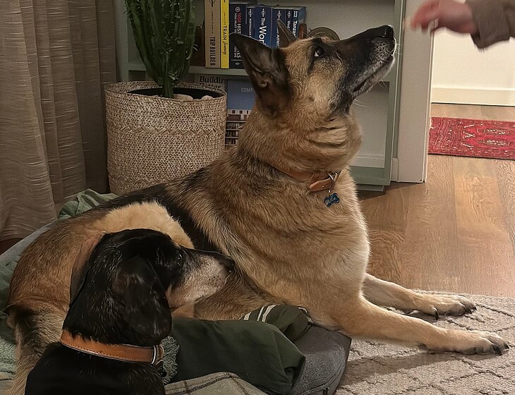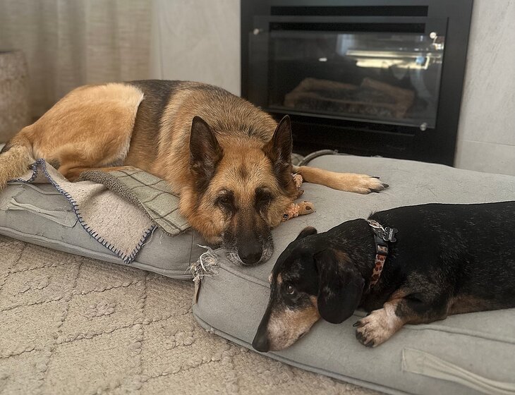 Our 2 dogs are - a 13yo German Shepherd girl Lena & a 10yo dapple short-haired Dachshund boy Nanaimo.