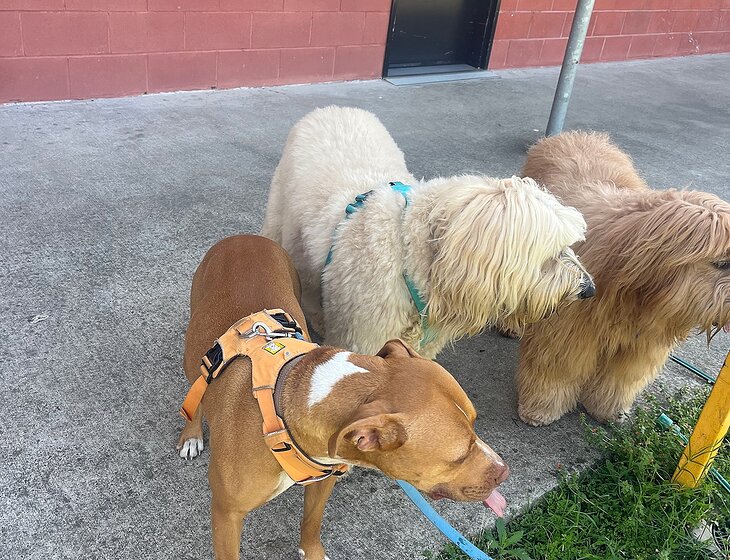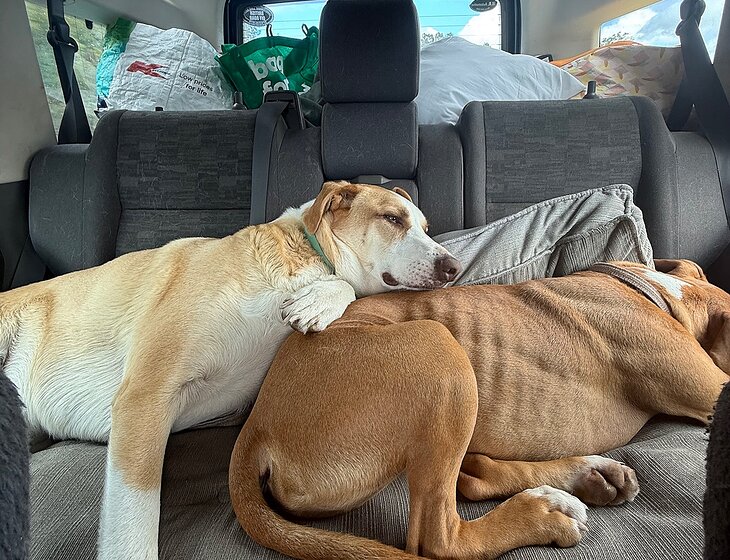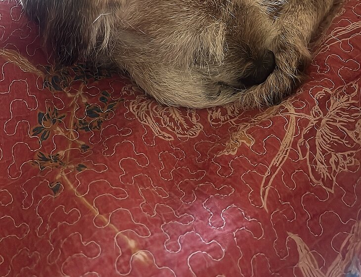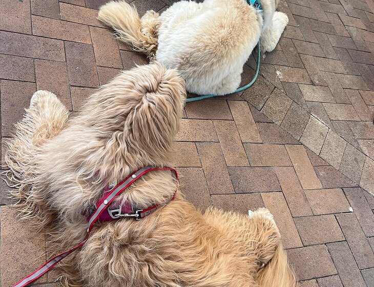One of the dogs is elderly (19) comfortable with the challenges of older dog ( border terrier