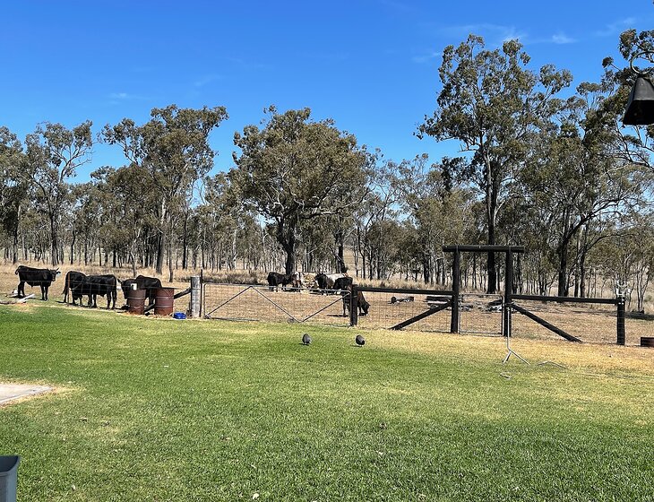 We have a shed house on 100 acres 8 km outside Pittsworth . We have cattle that look after themselves and chooks and Guinea fowl that need feeding and watering . A veggie garden that needs watering . We have a zero turn mower if the grass in the house yard needs a now . Our 2 dogs usually go to the kennel in town when we go away . Heaps of room for a caravan . A quiet and peaceful place to park up but close to Pittsworth and Toowoomba .