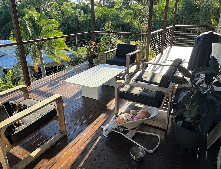 We enjoyed many walks exploring the area with Banjo. He also shared his favourite warm spots with us around their home. We all enjoyed the lazy days and views from the deck.