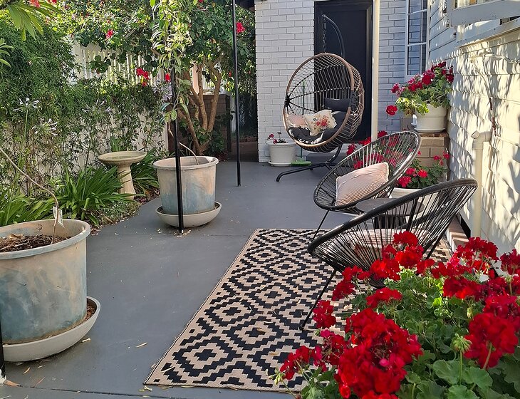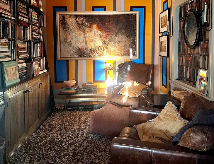 Eclectic architect’s 1950s home filled with books and original artwork. This is a TV-free, creative space with many cosy reading nooks and a delightful garden secluded behind a white picket fence, opposite a small park. The house is available for a full month to enjoy. This won’t suit everyone — it would best suit someone who loves quiet, books, art, and spending time in the garden, and who is happy to water daily.
