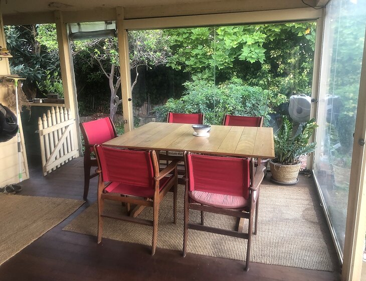 We live in a 1935 Californian bungalow on a quiet cul-de-sac in the 'tree street' area of Bunbury. Our place is walking distance (10mins) from the centre of town and an even shorter stroll to the beach. We are across the road from a small bush reserve with an elevated view towards the wetlands reserve from the kitchen/back verandah. Both the beach and the reserve are ideal for walking the dog. Speaking of whom, our main priority is to find company for our 13-year-old female staffie/mastiff cross. She has a very gentle, loving nature and gets on well with people and dogs alike. A moderate daily walk and as much company as you can give her will keep her very happy. As she has grown older, we have allowed her to sleep inside. As successive members of her 'tribe' have moved away from home, she has migrated to sleeping on the floor in the bedroom. In our absence she may be anxious enough to need to continue this habit.