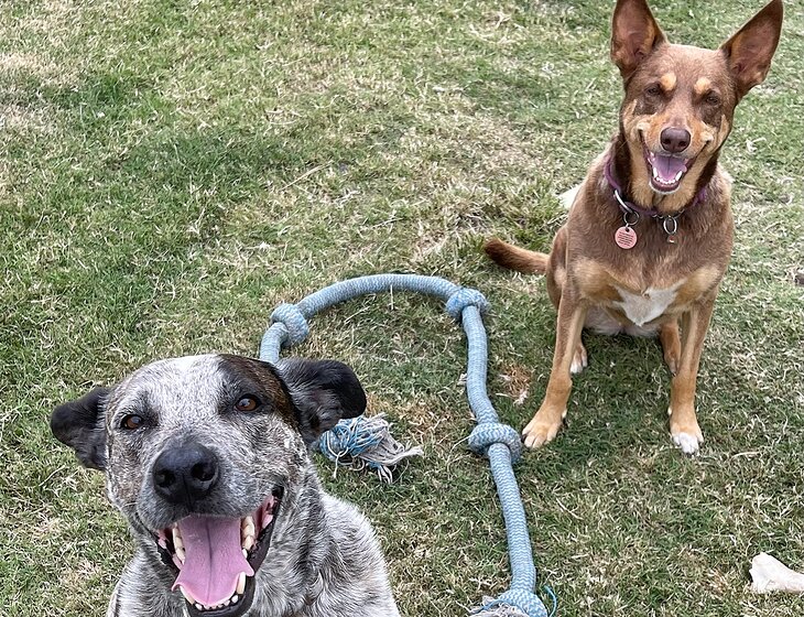 I have two dogs, a kelpie and a cattle x bull arab. The kelpie is very independent and not too needy, the cattle cross is at the other end of the spectrum. He likes to be near you and is very affectionate, having said that, as he’s maturing he is finding himself more comfortable apart for longer. They both play very well with each other and at the end of each night they are both exhausted. During the day when I am not home they are left outside, but when I am home, I let them in the house and they can come and go as they please. They do not need walking, just feeding, once daily meds for one of them and cuddles.