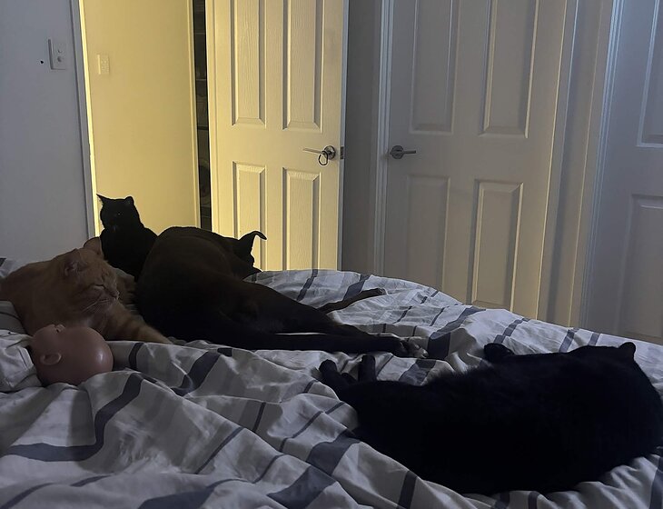 Pet sitting required: | 1 dog, 4 cats |