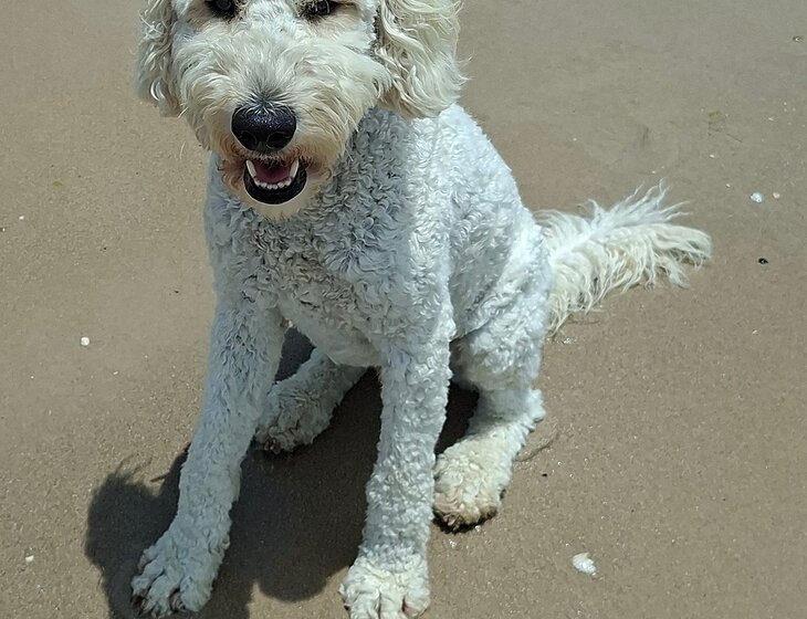 We have a 21 month old bordoodle that we walk every day on the beach and he loves to swim