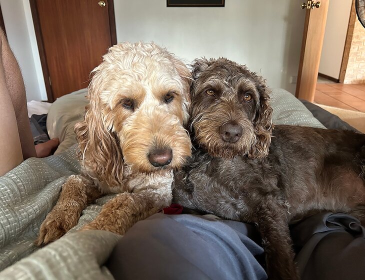 I am looking for a fit-ish couple or capable single person as my dogs are used to getting long walks and love being out and about with their humans. They also can easily sleep by your side or watch TV with you. They just love being around people. Ultimately I just want them safe and cared for. They are ok to be left alone during day but not at night.