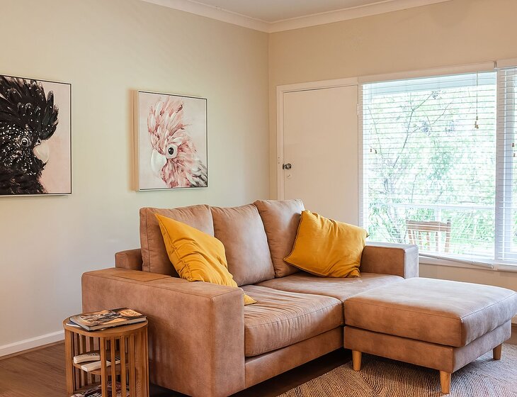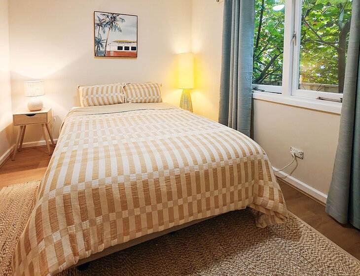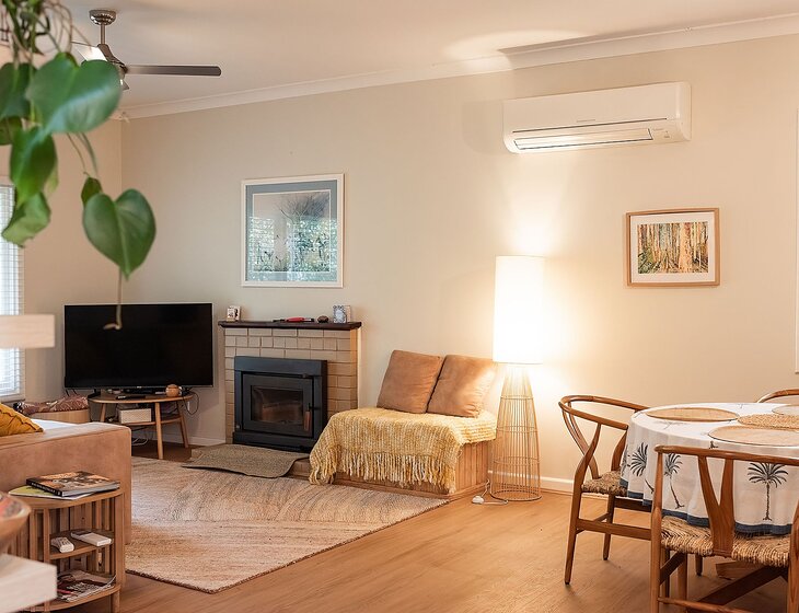 There are 2 other available bedrooms that have the usual comforts with queen beds. There is a fireplace plus a split system for heating. Wifi and smart TV. The garden is lovely and peaceful, there is also a outdoor firepit and bathtub.