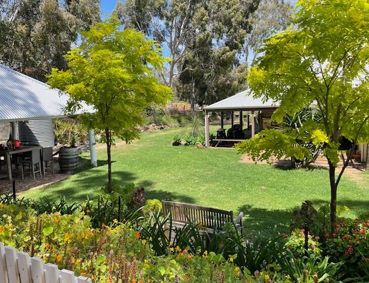We live in the Byford hills on 1.5 acres nestled amongst the trees. The garden is fully reticulated. You can park your van right next to the house with full amenities close by ie electricity, water and WiFi.