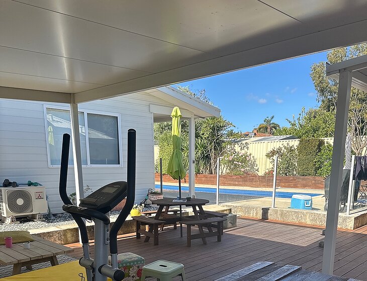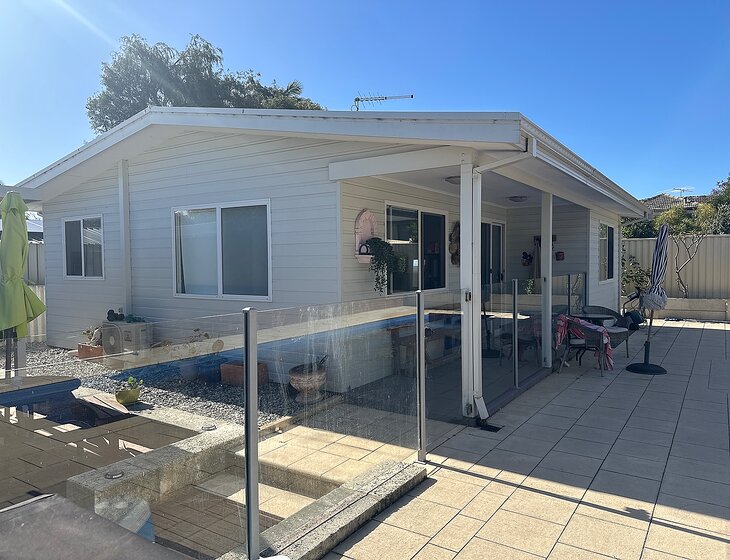 We have a cottage at the front and reticulation this is where the animals usually hang out.It has a bathroom and bedroom with an office and kitchen. We have a granny flat out the back that has 2 bedrooms,kitchen ,laundry and bathroom . We have a pool and decking area.
