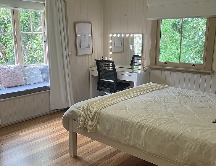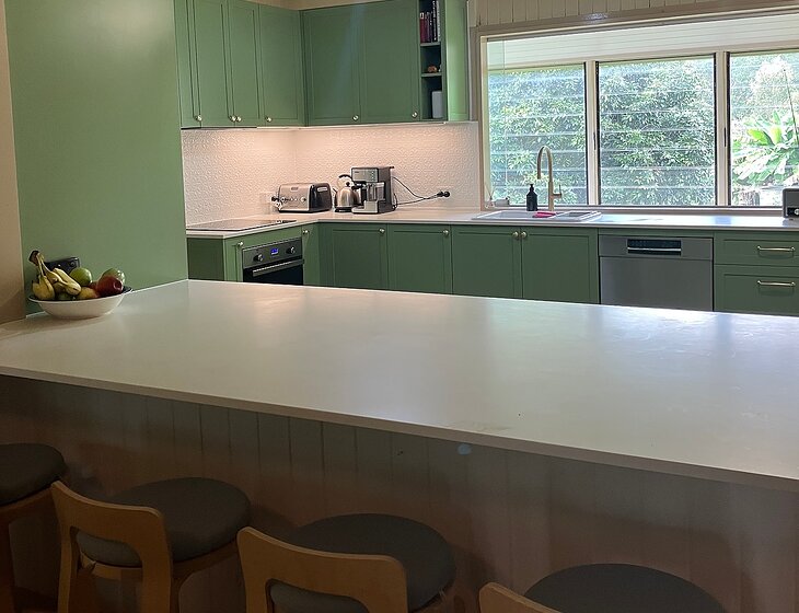 Our home is a beautiful two story Queenslander on two acres near Samford Village. We have two dogs Harley (Female Shepherd cross) is a rescue diva and takes a bit of time to warm up. Banjo (Male Retriever Cross) is the complete opposite. He’s everyone’s best friend straight away. Especially if you can throw a ball. No dog walking required, but they love a game of fetch or tug of war. Our five chickens are even easier, we let them out into their run every morning and make sure they are all in when it gets dark. They have their feeder and water re-filled every couple of days and we give them our kicthen scraps. in return they give us lovely eggs.