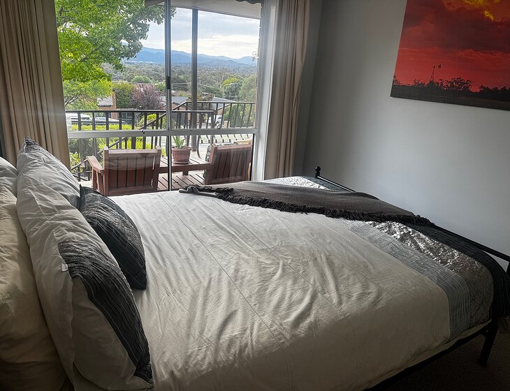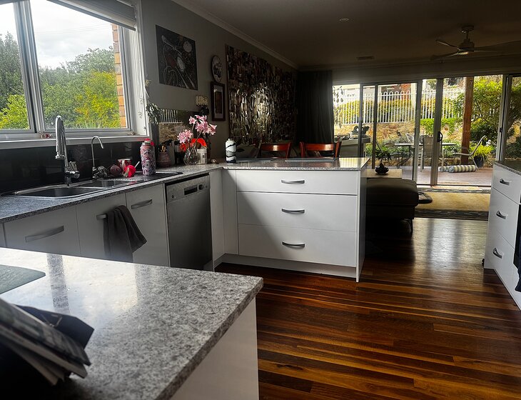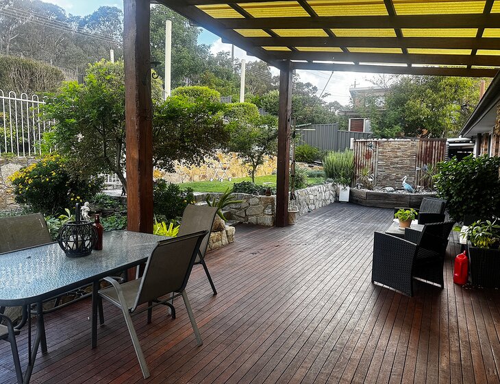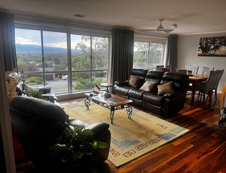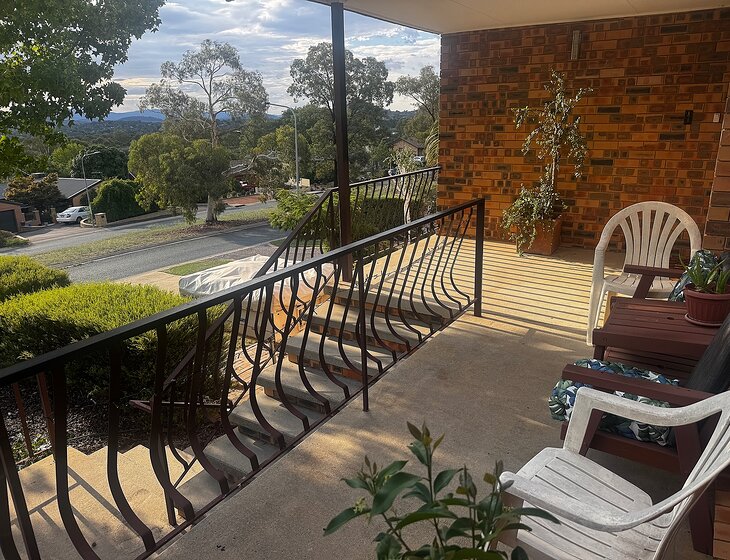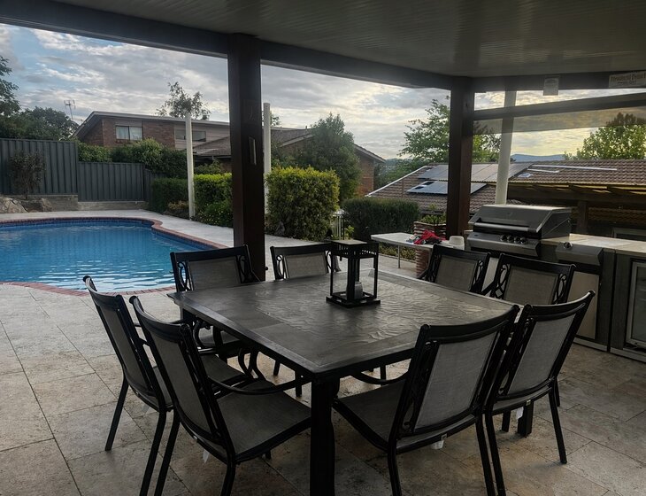 Our house is a 4 bedroom, 2 bathroom modern style (renovated in 2018) house with seperate living and lounge room. Beautiful views over the valley to the Brindabella mountains. We have a lovely outdoor deck which opens up from the living room. Steps lead up to the in-ground pool area with gazebo and BBQ and then leads up to another level to the fire pit. We back onto a small nature reserve and only have neighbours on either side of us who are very good. There is a double garage under (only one space available), a carport to the side of the house and space for a caravan if required in front of the house.