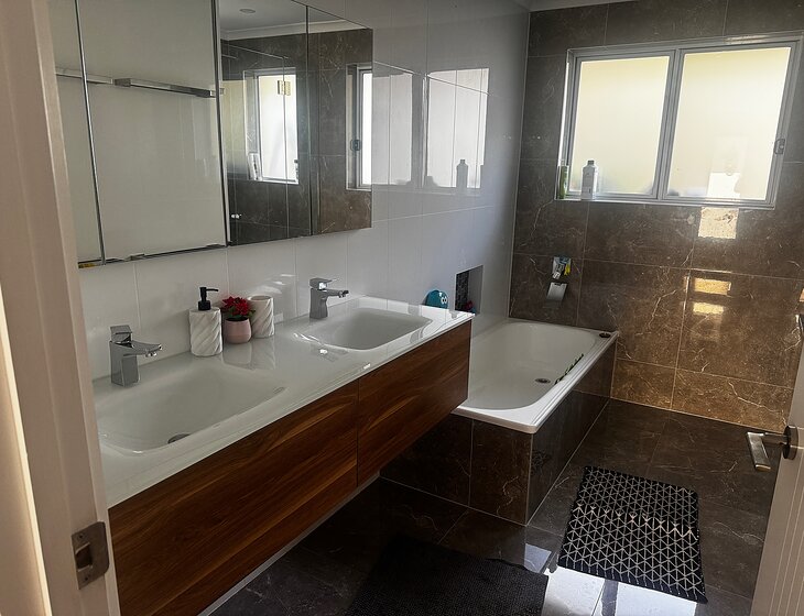 We have ducted aircondition and heating to make your stay very comfortable. You will sleep in the spare room which has a queen bed and is opposite the main bathroom and WC. Another bedroom has two single beds and the third bedroom is set up as an office and available for use. The master bedroom is not available.