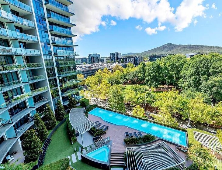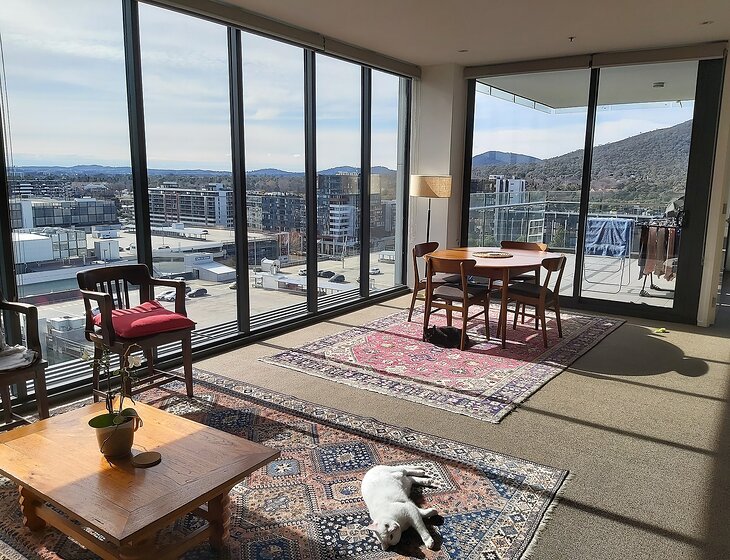 We live in a large two bedroom apartment in the middle of Canberra city, right opposite a beautiful park and a shopping centre with two supermarkets, cafes/restaurants, cinema and lots of other shops. We have two gorgeous cats called Pepper and Snowy (5-year old siblings) who enjoy lots of attention, love and pats. We also have a couple of pot plants which need some water from time to time. Our apartment complex has a communal gym, pool and spa, and you will enjoy daily sunrise/sunset through Mt. Ainslie and Black Mountain from our apartment. If you are a down to earth, responsible, clean and kind to animal person, we would love to hear from you!