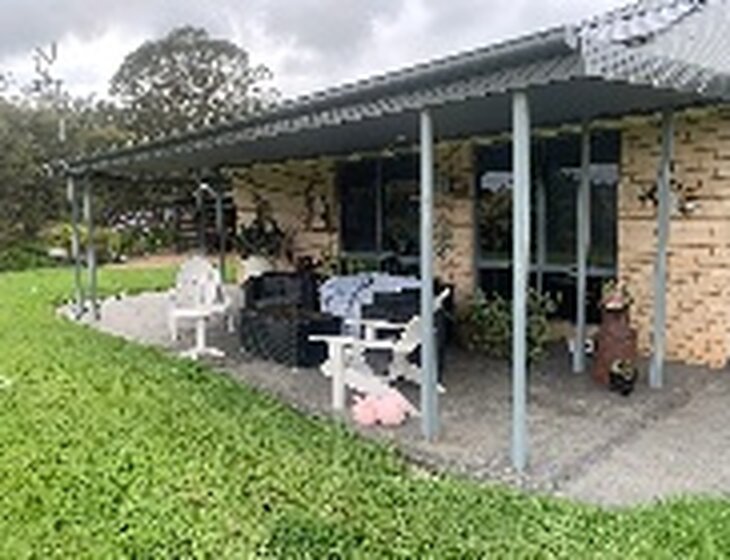 We have a modern three bedroom house on 25acres in Candelo NSW which is 25 minutes from Bega, 30 minutes from Merimbula and two half hours from Canberra. Candelo has a general store / coffee shop, petrol garage and post office. And once a month the biggest markets on the south coast are held in Candelo. We have a 1/2 kilometer river frontage with great swimming holes.