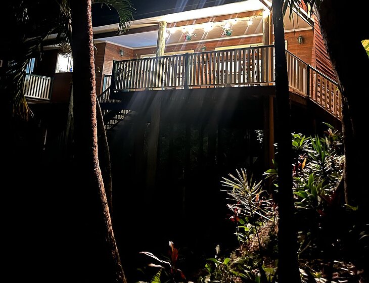 You’ll be staying in our peaceful 3-bedroom Treehouse in Cannonvale – a tranquil retreat nestled into the mountainside, with stunning treetop views that roll out to the ocean and a creek that flows down one side of the property. Think birds singing, sea breezes, and lush rainforest vibes. 🌿🌊🦜