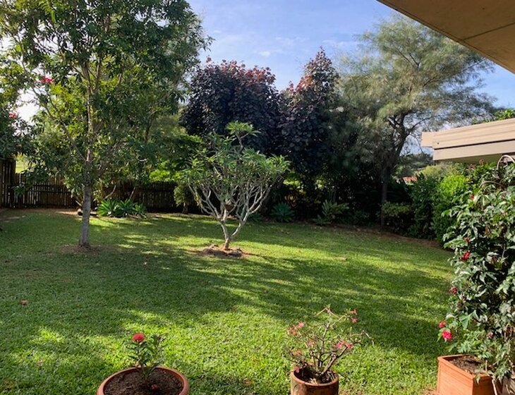 The garden mostly looks after itself except for a few pot plants. The house comes with 2 medium and 1 small dogs and 1 cat. They all have the run of the house.