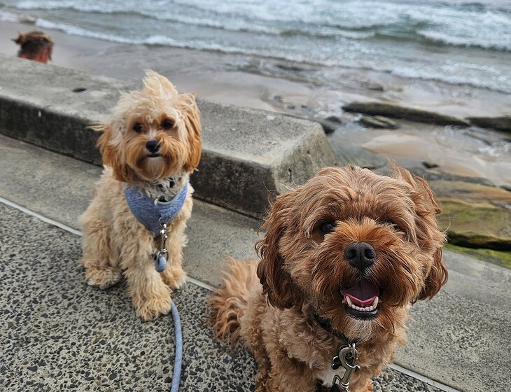 Both sweet loving dogs. Prefer someone who can be around for the 5 days , free during the day to do what you want but home at night. We live across the road from a park, 15min walk to cronulla beach and bqck onto a reserve.